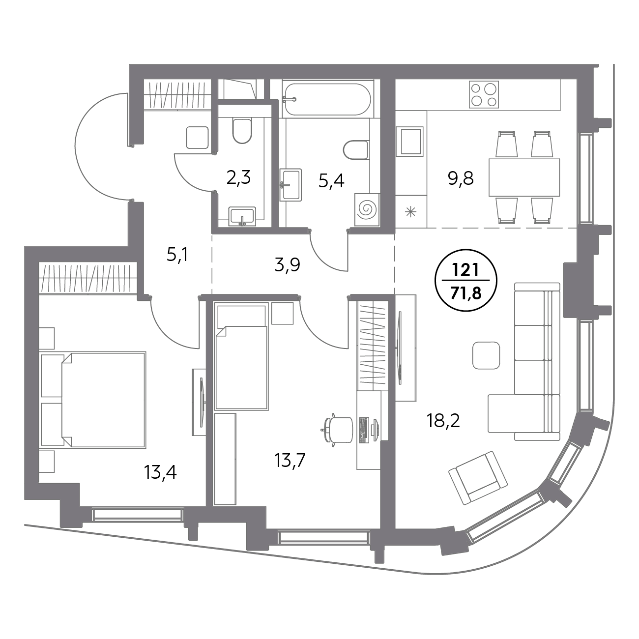 Отделка / меблировка не входит в стоимость квартиры. Квартира продается в состоянии без отделки.
