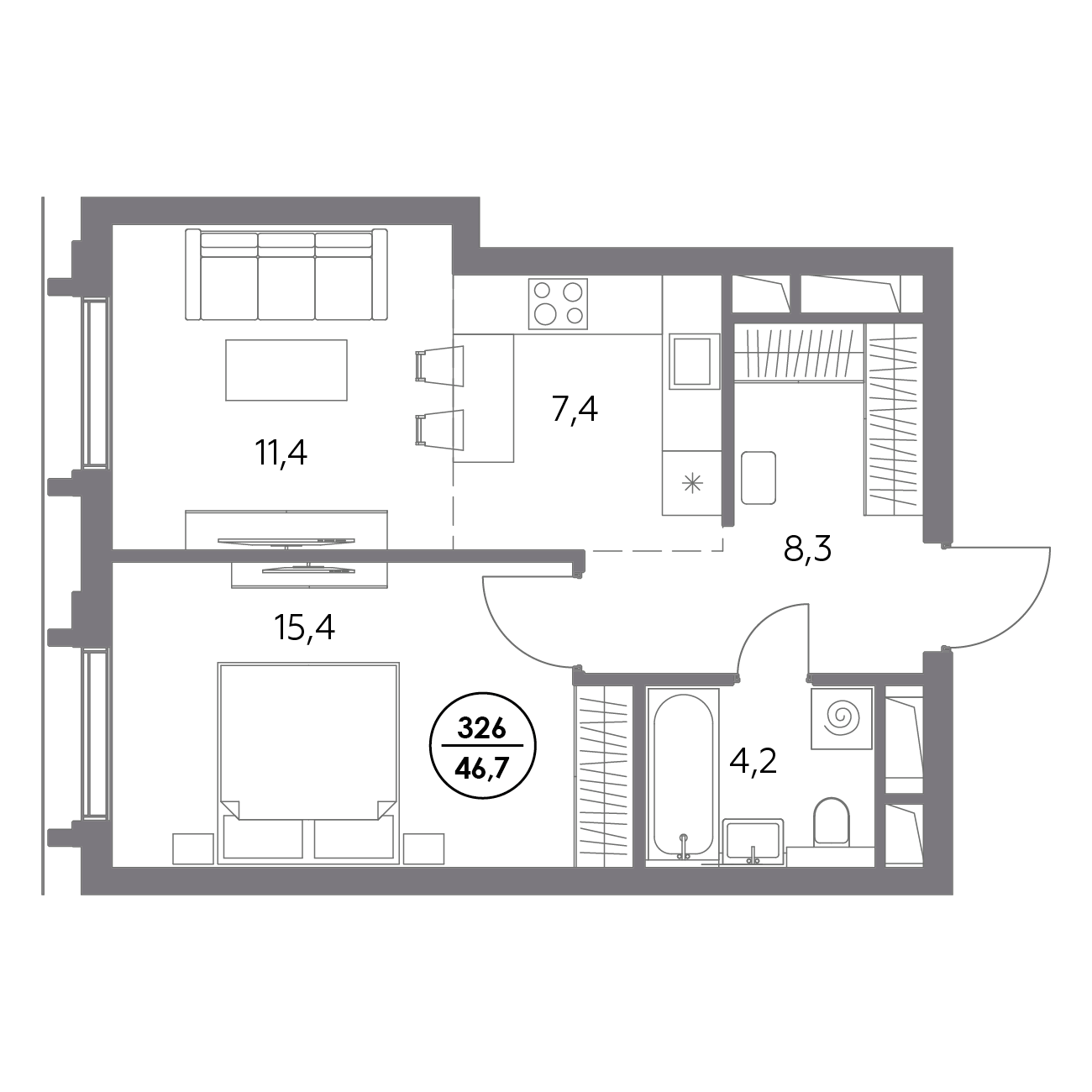 Отделка / меблировка не входит в стоимость квартиры. Квартира продается в состоянии без отделки.