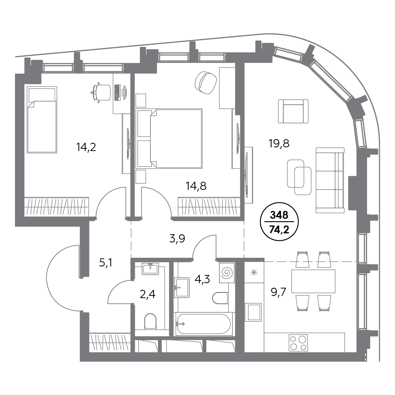 Отделка / меблировка не входит в стоимость квартиры. Квартира продается в состоянии без отделки.