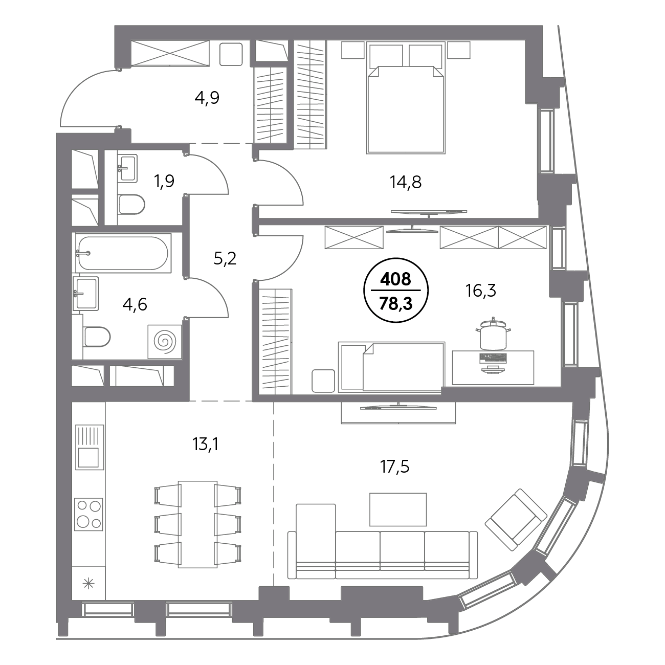 Отделка / меблировка не входит в стоимость квартиры. Квартира продается в состоянии без отделки.