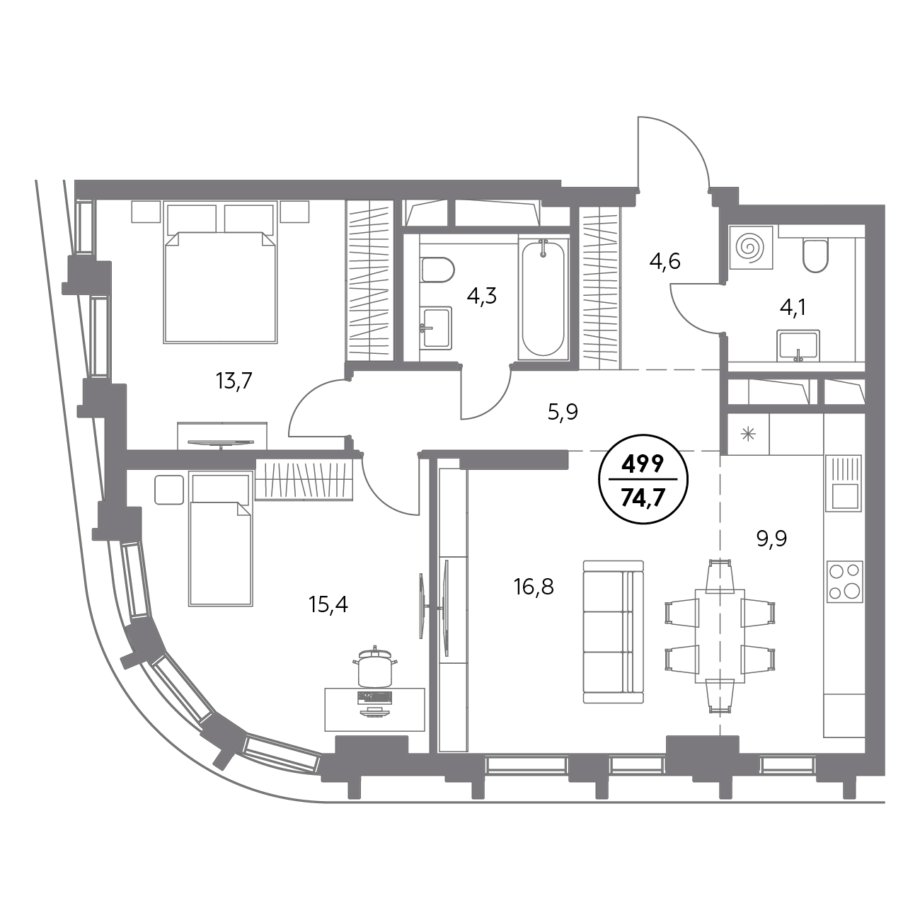 Отделка / меблировка не входит в стоимость квартиры. Квартира продается в состоянии без отделки.