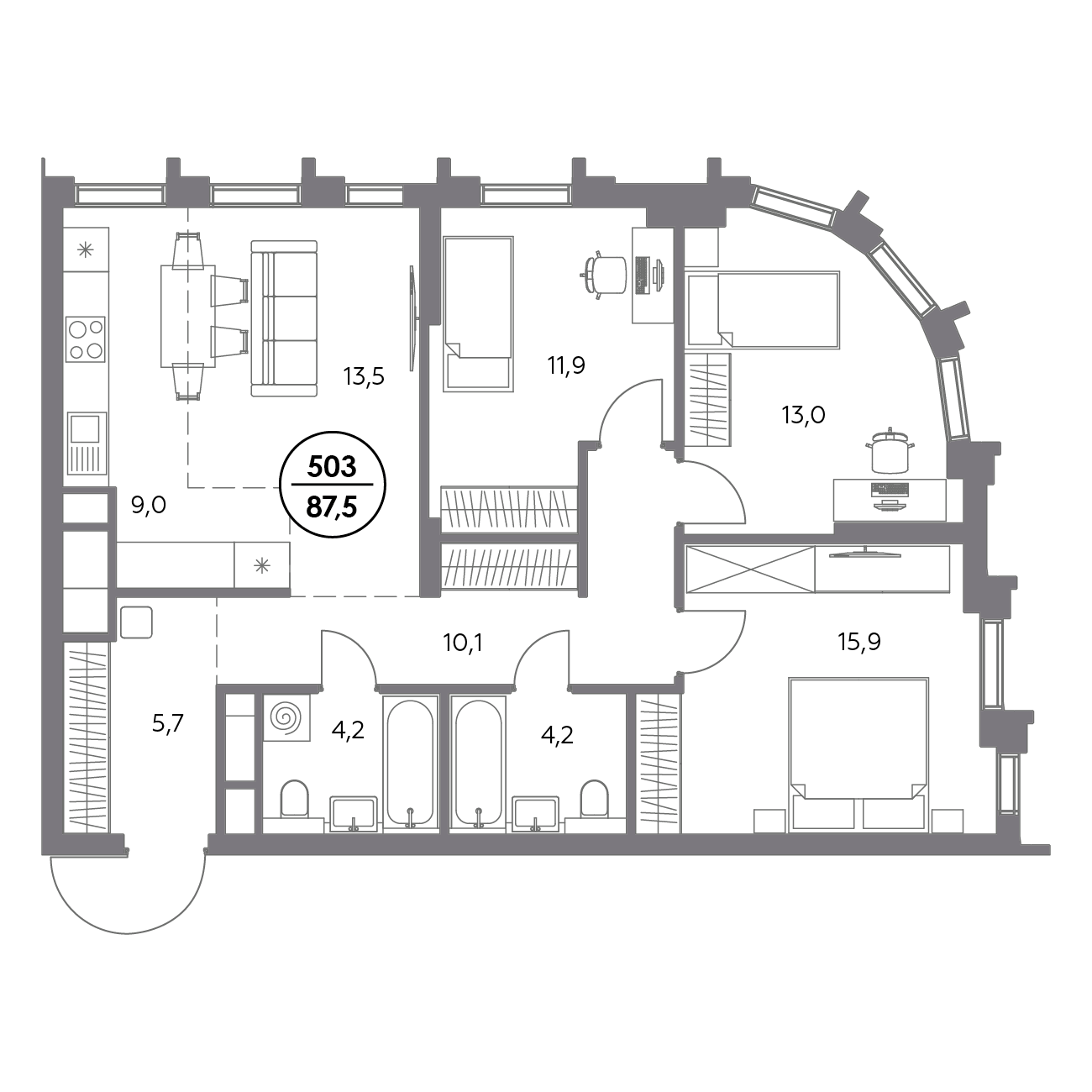 Отделка / меблировка не входит в стоимость квартиры. Квартира продается в состоянии без отделки.