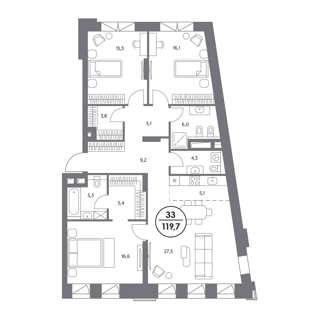 Отделка / меблировка не входит в стоимость квартиры. Квартира продается в состоянии без отделки.