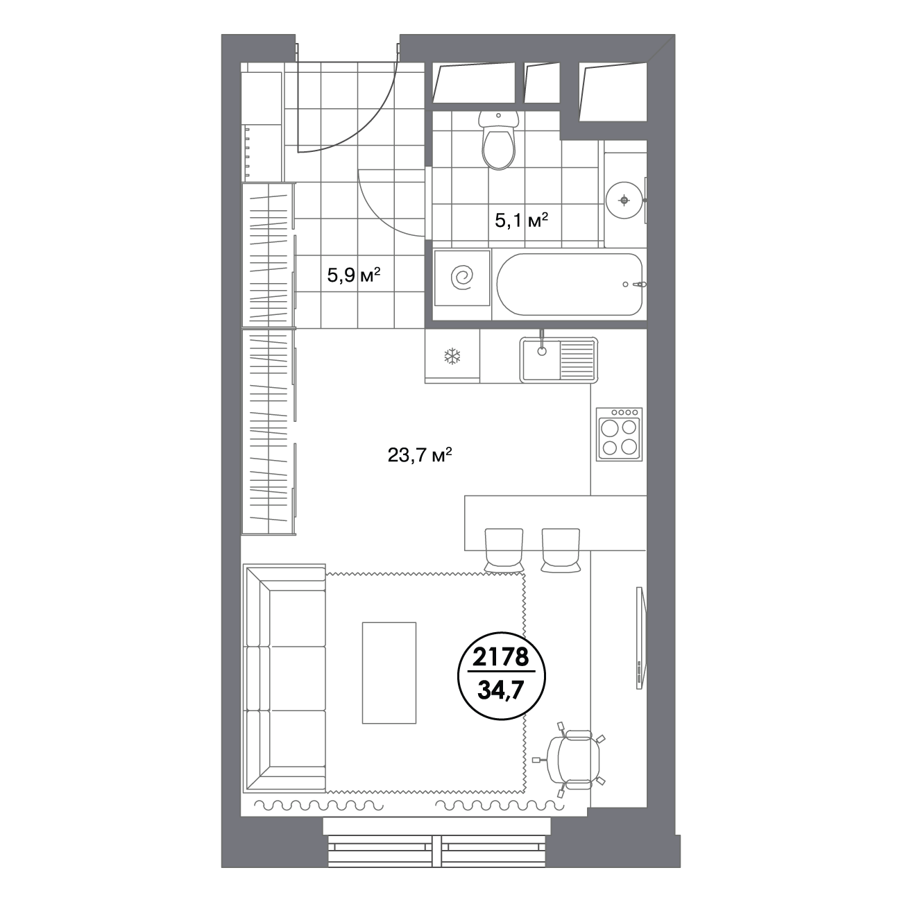 Отделка / меблировка не входит в стоимость апартамента. Апартамент продается в состоянии без отделки.
