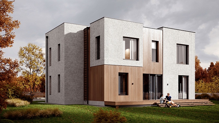 Архитектурная концепция поселка разработана бюро IND architects и включает 7 типов коттеджей в двух стилях – «современный» и «стиль Райта». Двухэтажные дома будут отделаны натуральными, долговечными и экологичными материалами: керамическим кирпичом ручной формовки лимитированной серии и планкеном из натурального дерева. Дом Brownie с отделкой кирпичом шоколадного оттенка и дом Cloudy с отделкой дымчатым кирпичом представлены в двух различных по площади вариантах. Дома Victory и Ivory отделаны кирпичом молочного цвета, дом Berry украсят фасады насыщенного терракотового оттенка.