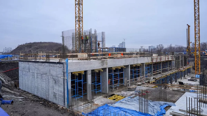 В первом квартале жилого комплекса бизнес-класса «Адмирал» от ГК «Галс-Девелопмент» приступили к возведению монолитного каркаса. Работы по устройству вертикальных конструкций и плит перекрытий первого этажа начались с 19-этажной секции корпуса 1.4. Параллельно продолжается заливка бетона в фундамент соседнего корпуса 1.3 на 13 этажей. Всего в подземную часть планируется залить не менее 9 700 кубометров бетона. Под будущими башнями на 47 и 42 этажей началось устройство свайного поля. Монолитные работы во всех корпусах первого квартала планируют завершить к февралю 2027 года.