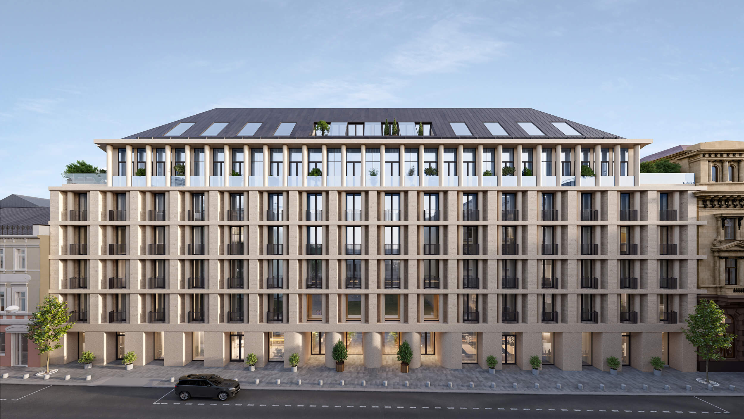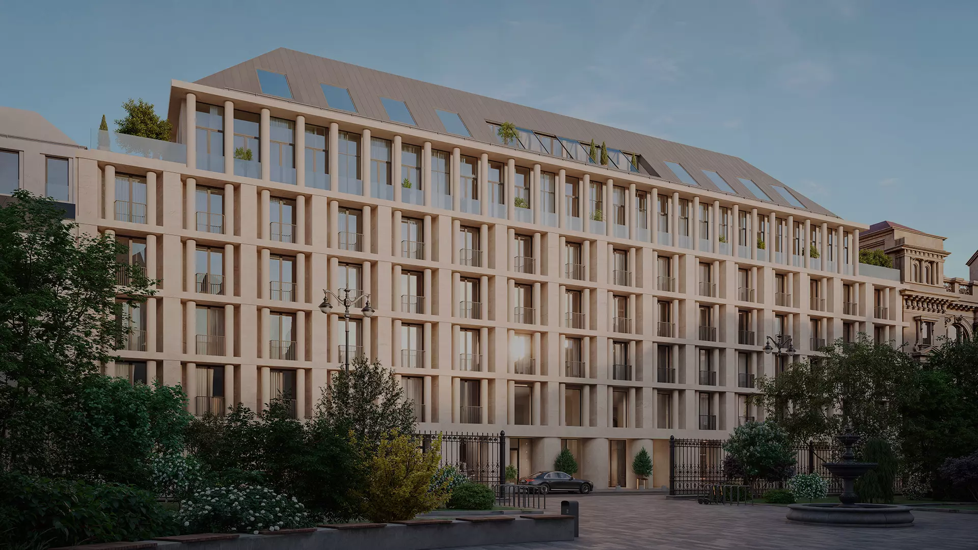 Так появились клубные дома в стиле современной архитектуры, вдохновлённые контекстом окружения. Основой для образа зданий и пластики их фасадов стали характерные детали соседней исторической застройки — их «фамильные черты» в современном прочтении — арка, колонна, размер и ритм окон.