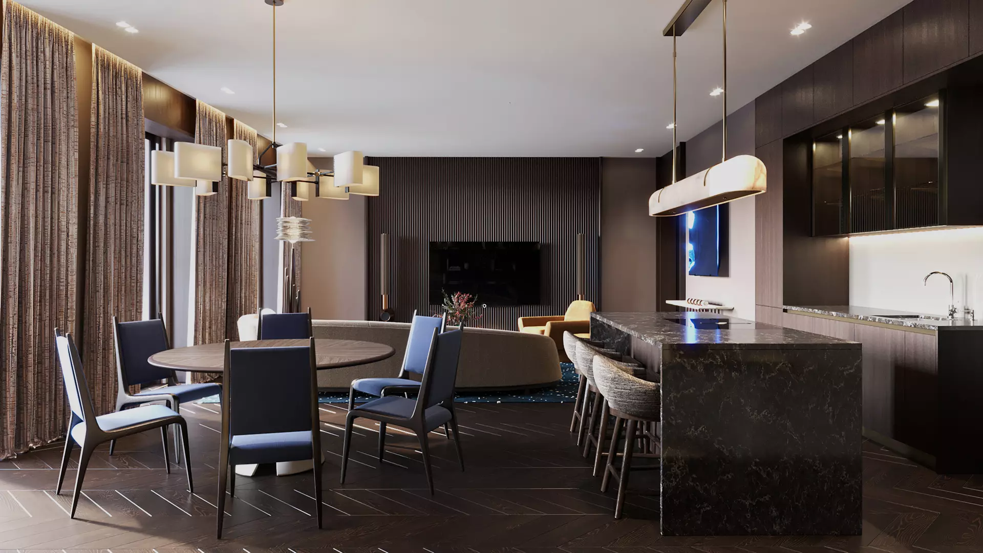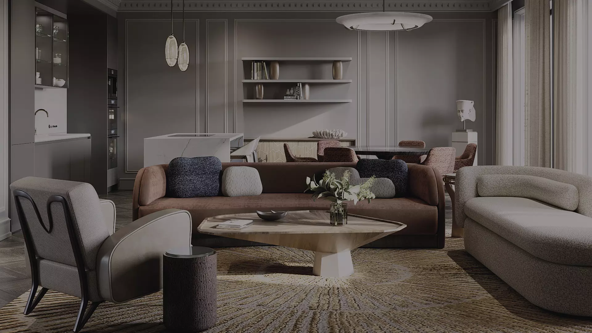 Для комплекса «Рождественка 8» бюро Олега Клодта создало два стилевых решения — неоклассический и современный, каждый в светлой и тёмной палитре. Это позволит будущим жильцам выбрать то, что созвучно именно им по атмосфере и энергетике.