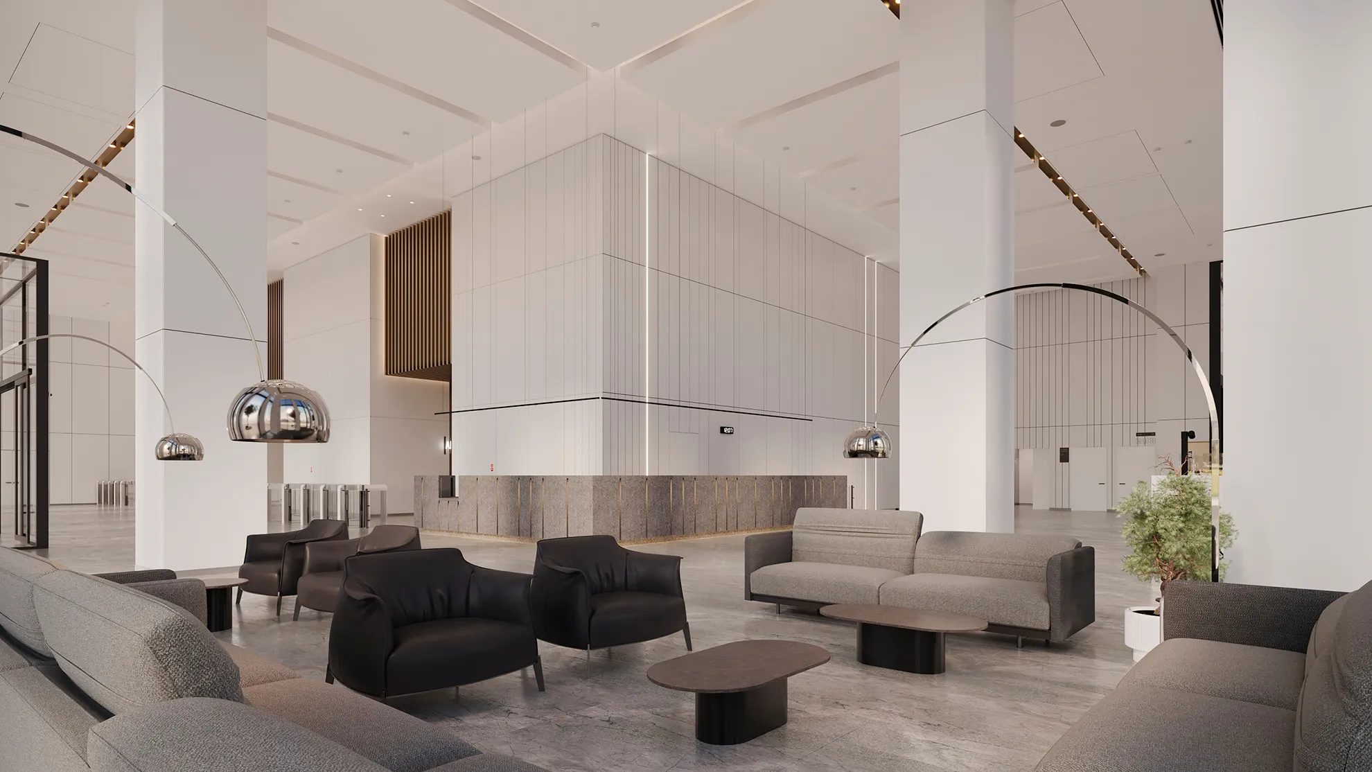 Общественные пространства БЦ «Север» объединяют функциональность и эстетику. Просторное лобби с дизайнерской отделкой натуральными материалами и комфортной зоной ожидания будет наполнено воздухом и светом благодаря панорамным окнам и высоким