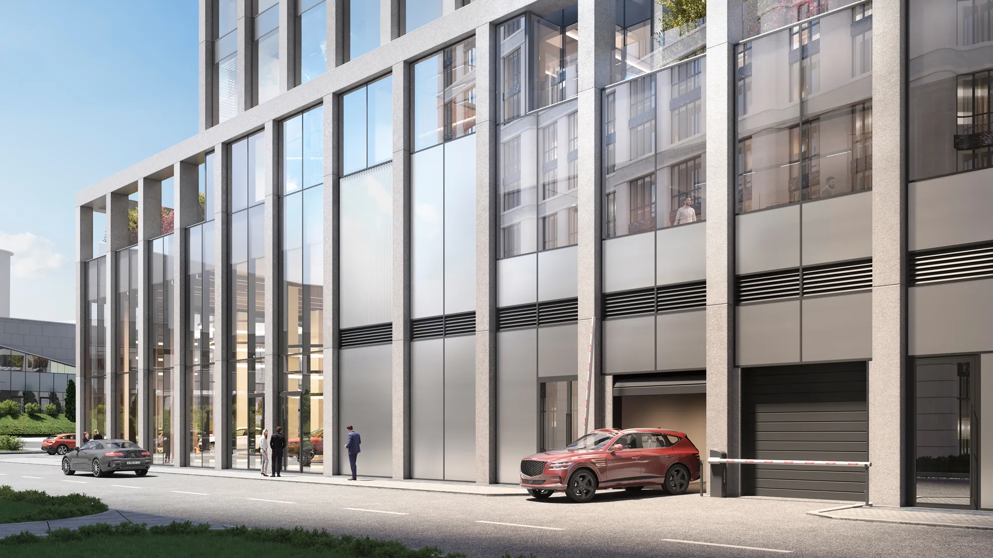 Здание оснащено собственным двухуровневым паркингом, а также для резидентов будет доступен подземный паркинг БЦ ВТБ Арена.